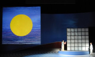 “…the gorgeously colored, geometrically inspired, minimalist set had a striking impact, as did the colorful costuming and computerized special effects…The set design by Jun Kaneko…was beautiful.”