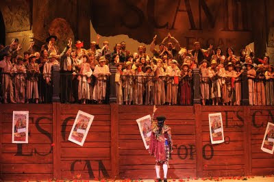 Looking around a little more, I’m realizing that “fashion at the Madison Opera” is as diverse is it comes. There is glitter and there are floor length gowns…there are blazers, plaid shirts, argyle sweaters, jeans, slacks…everything! The theme here is ‘anything goes’—and I love it….It’s so fun to see all the components from my backstage tour actually on stage! The wigs were one of my favorite parts to see in action—they truly look like they’re made for the women (good work, Jan!)…The Spanish skirts are fantastic—very flowy, the kind of skirt you wear and just HAVE to dance in. Another note: many of the gypsy women are wearing peasant tops , very much like the one’s I’ve seen on the market today…I think my final verdict on this show is that it’s something everyone should experience at least once in their life. I, for one, hope to experience it more than once, as it was absolutely breathtaking. I don’t have the eloquent, perfect words to describe it like a true show reviewer (maybe someday…), but for now, I’ll just say: Wow.